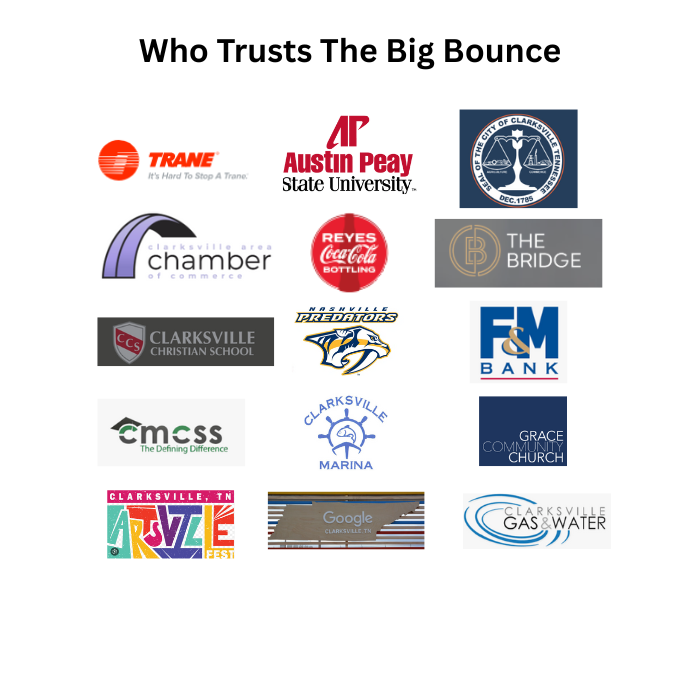 For the best Bounce House Rentals in Clarksville, TN, The Big Bounce is the area's leading provider of fun! We appreciate your interest in our products and our service! Your one-stop-shop for Bounce Houses, Bounce Houses with slides, Water Slides, Obstacle Courses, Tables & Chairs. We deliver anywhere in Clarksville for FREE and will deliver most anywhere else based on current gas prices. All of our equipment is cleaned and disinfected after every use! Count on us for every event that needs fun added for kids of all ages! Including Backyard Parties, Family Reunions, Church Events, School Events & Field-days, Festivals, Corporate Events, and any other occasion that Party Rentals are needed. If you want something we don't offer, please ask. Chances are very good we can hook you up!