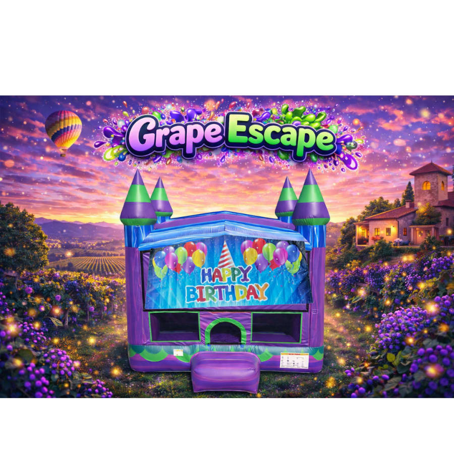 Inside Grape Escape, kids have plenty of room to jump, bounce, and burn off energy in a fully enclosed space designed for safe, active fun. The mesh siding allows for easy supervision from every angle, and there’s even an inflated basketball hoop inside for added excitement. Whether they’re bouncing nonstop or practicing their slam dunks, Grape Escape keeps the fun going longer than a standard bounce house.