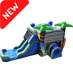 The Big Bounce of Clarksville TN has added yet another Bounce House Slide Combo to our inventory in 2022. The Tropical Bounce Combo is perfect for those surfer dudes or surfer dude-etes. Need to bring an element of the beach to your backyard? Palm trees and surf boards will do just that!