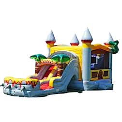 The Big Bounce of Clarksville TN brings you a dinosaur themed Combo by popular demand. What exactly is a combo you ask? A combo is a thrilling combination of bounce house fun paired with an action packed slide or slides. You and your children will have hours and hours of fun with the 13' x 13' Bounce House area that includes a basketball hoop! While inside the Bounce area there are two sets of slip-resistant steps that lead to the double-lane Water Slide. Your read that correctly, 2 lanes of slippery fun for those racing enthusiasts! There is even a tunnel under the slide for those hide and seekers. And last but not least, this Combo has a large 12" deep pool too! If you think it may be too cold to use with water, this inflatable is just as fun used dry.