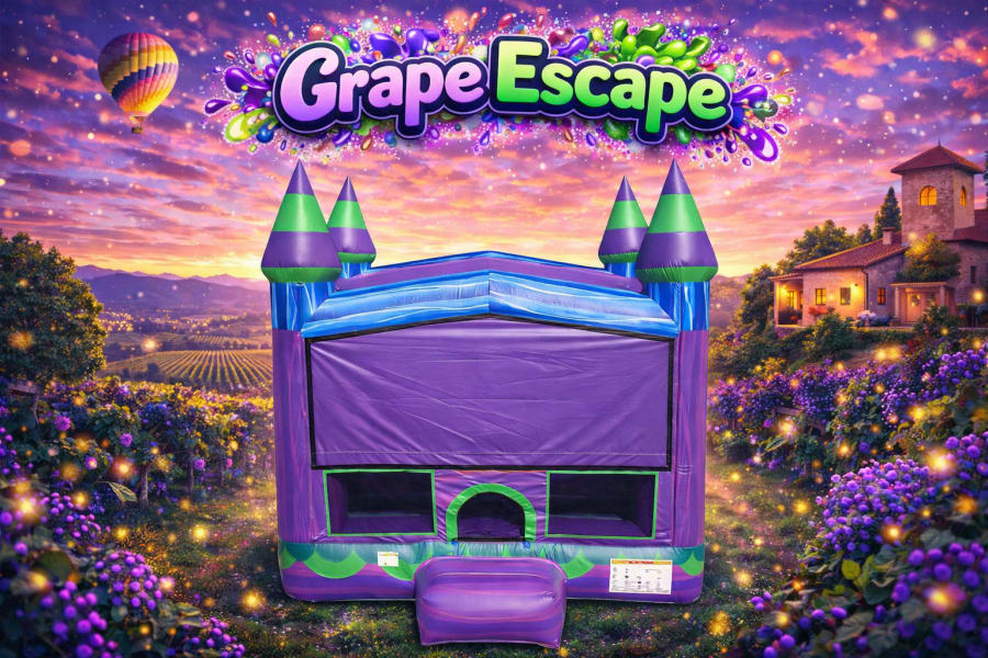 Inside Grape Escape, kids have plenty of room to jump, bounce, and burn off energy in a fully enclosed space designed for safe, active fun. The mesh siding allows for easy supervision from every angle, and there’s even an inflated basketball hoop inside for added excitement. Whether they’re bouncing nonstop or practicing their slam dunks, Grape Escape keeps the fun going longer than a standard bounce house.