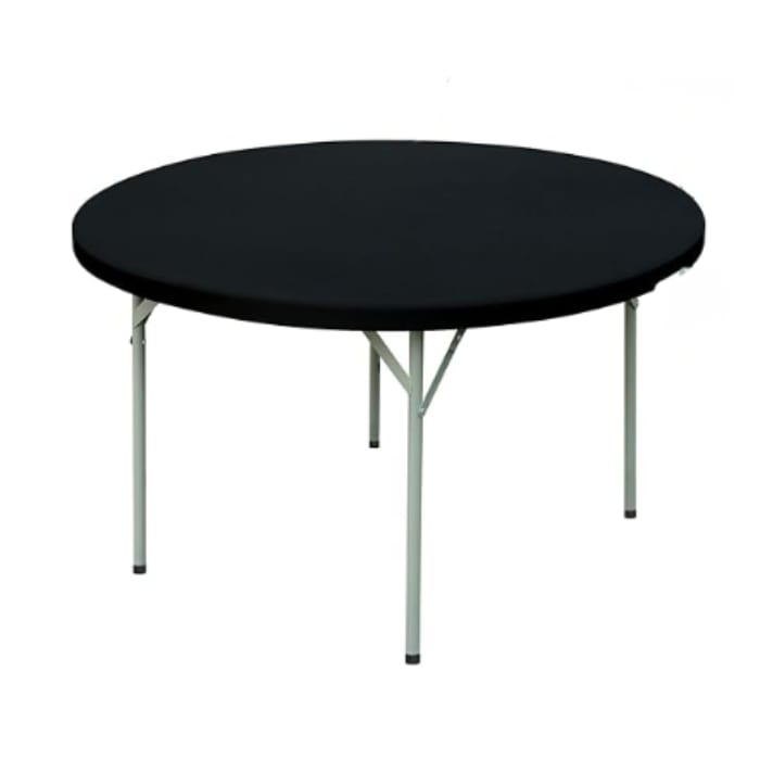 Add a clean, polished look to your event in Clarksville with our black fitted tablecloths for 60” round tables, available as a convenient add-on to your table rental. Designed specifically to fit our 60-inch round tables, these tablecloths feature elastic corners for a snug, wrinkle-resistant fit that stays securely in place throughout your event.