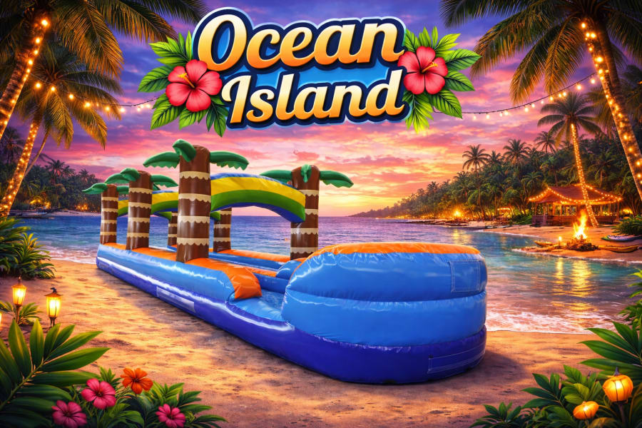 With palm tree accents and bright tropical colors, Ocean Island instantly creates a tropical vibe that stands out at birthday parties, school field days, church events, and neighborhood gatherings throughout Clarksville. This unit is designed to be used wet with water or paired with a foam cannon for an even wilder experience — it is not intended for dry use. Whether you go with a steady stream of water for maximum speed or turn it into a foam-filled race lane, Ocean Island delivers slippery, competitive fun every time.