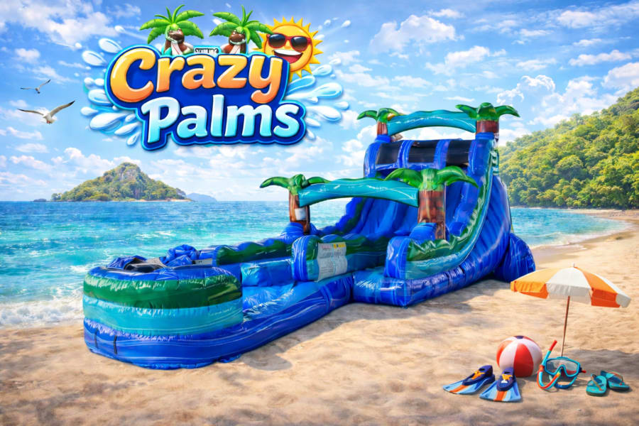 Every rental in Clarksville is thoroughly cleaned and sanitized before delivery, and our team shows up right on schedule, sets everything up efficiently, and handles your property with courtesy and professionalism from start to finish. When you want a water slide rental in Clarksville that combines tropical style, dual-lane racing, and serious splash power, Crazy Palms delivers big-time fun.
